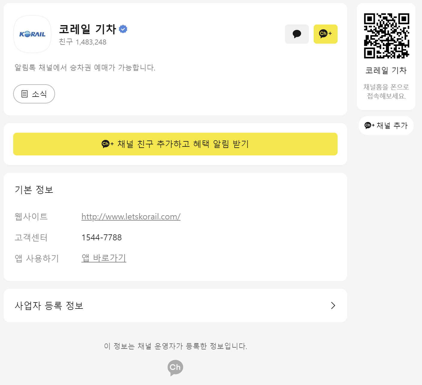 카카오톡에서 코레일 기차 채널추가하고 예매하세요!